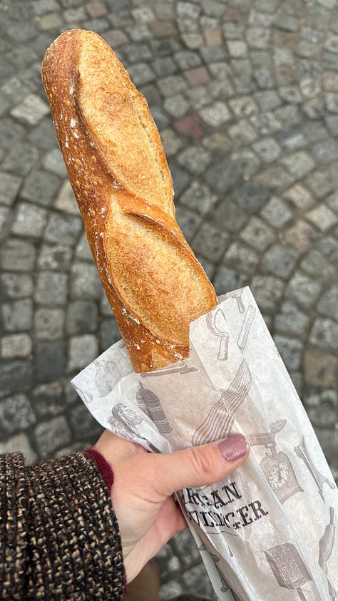 There are daily interactions that feel useful, but not as connective. I can seamlessly order a coffee à emporter or sur place. And I finally worked up the confidence to ask what exactly is the difference between a latte and a flat white. And now I’m pretty sure I have been making the wrong choice for years. I also found an amazing boulangerie two blocks over from my apartment. Esmé and I stop in most mornings at the end of our walk and I try out something different from the case, or default to un tradition because their’s are the best I have had in the city so far.